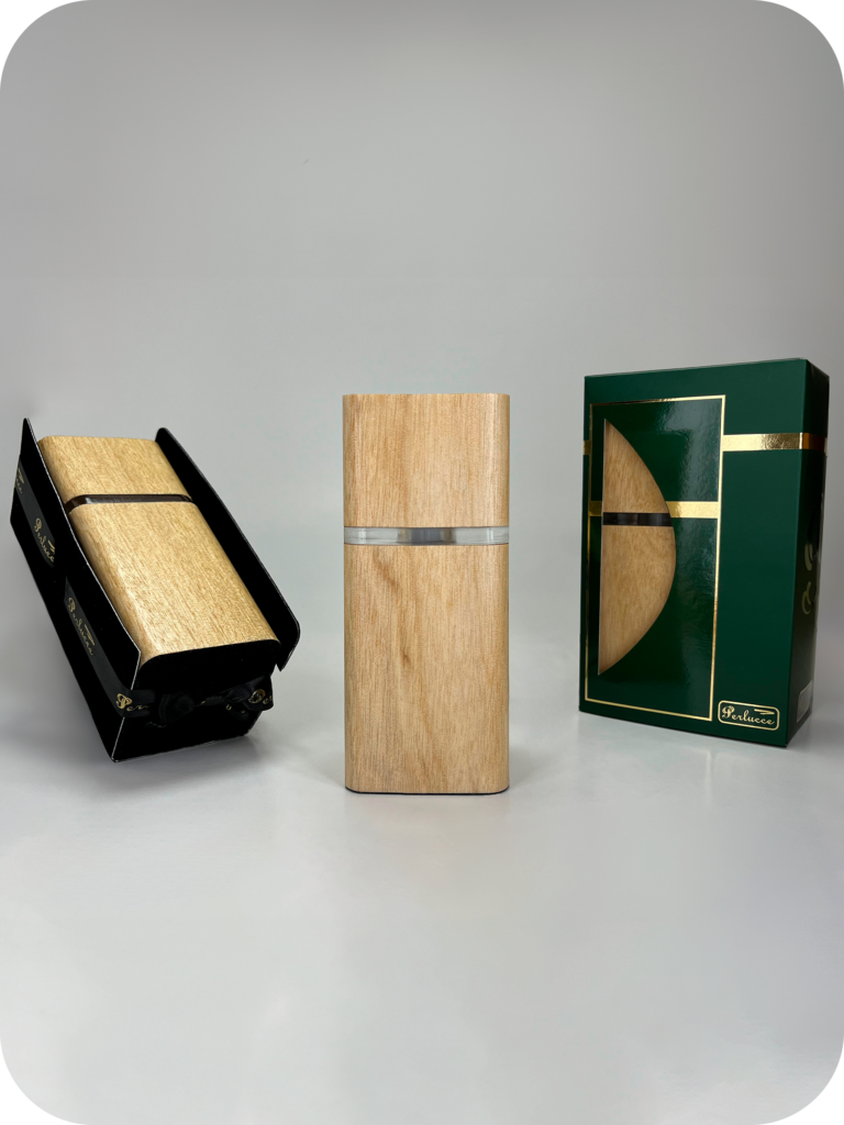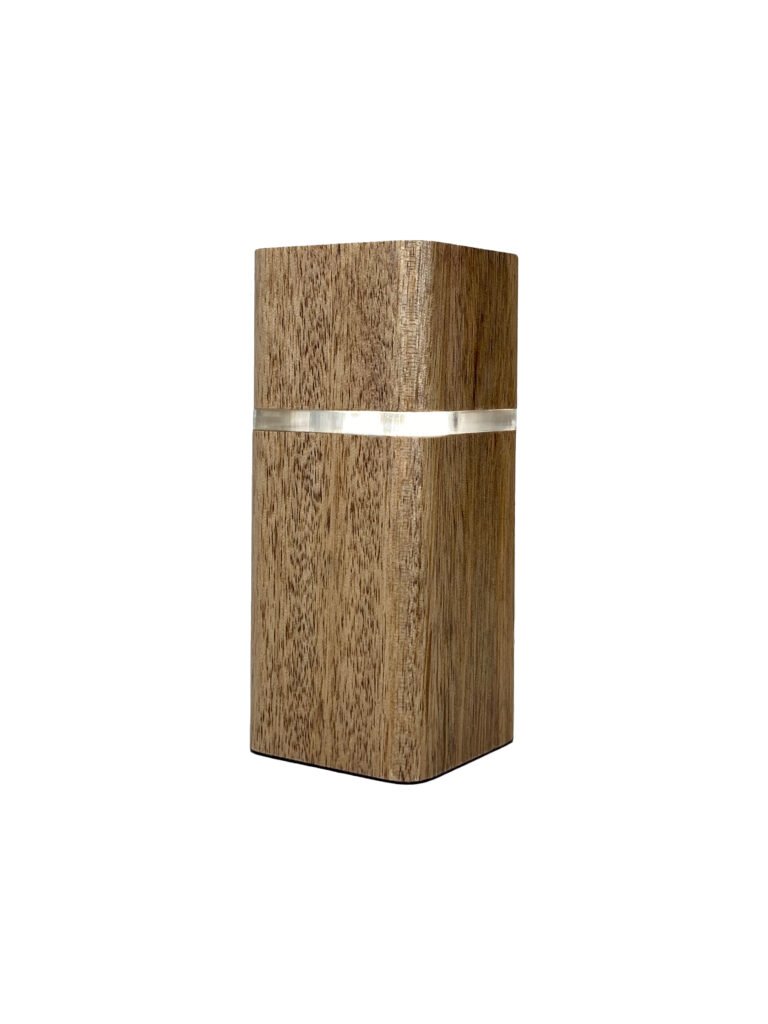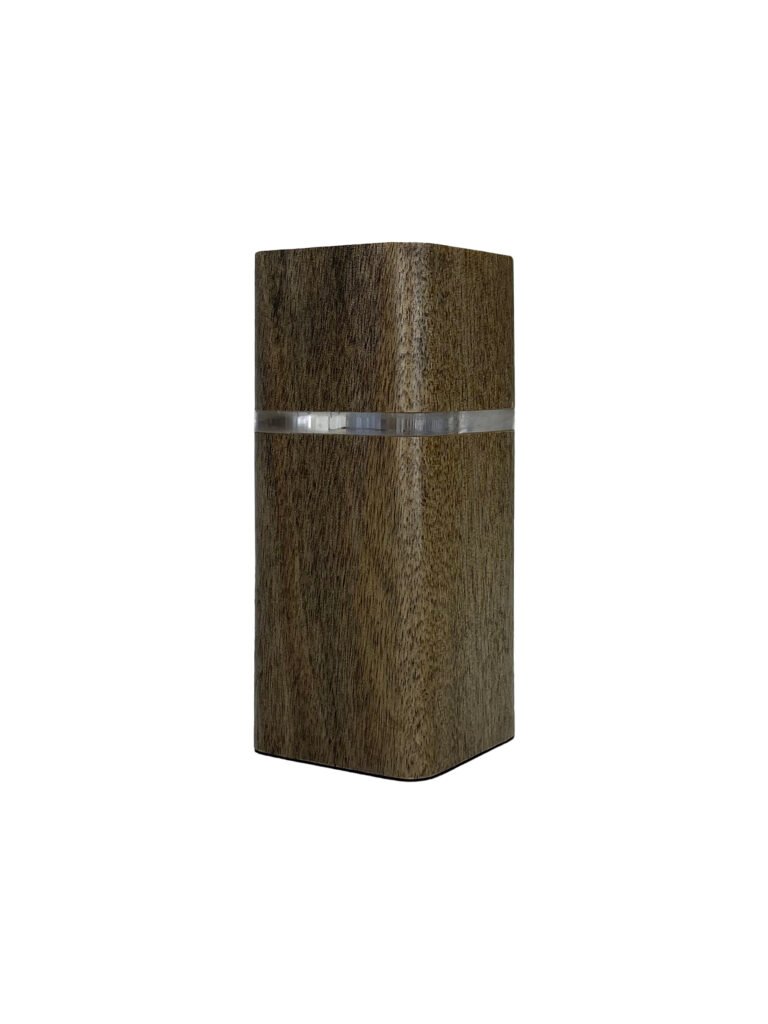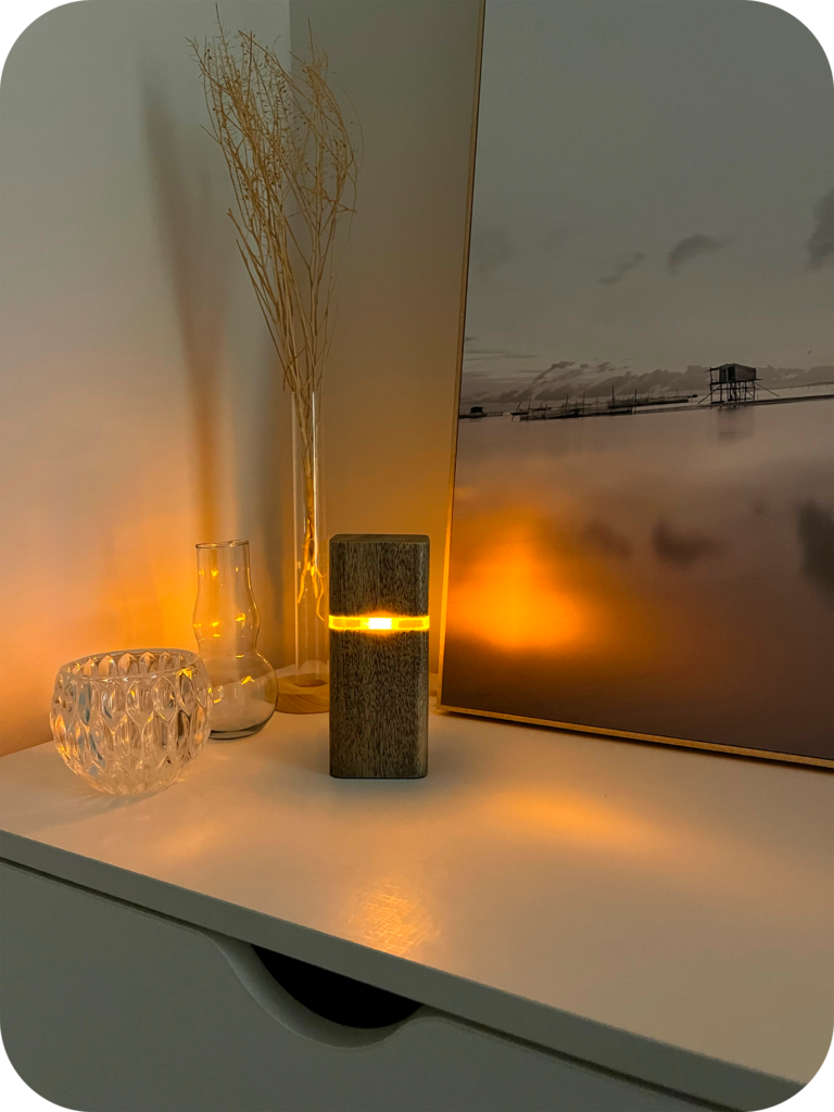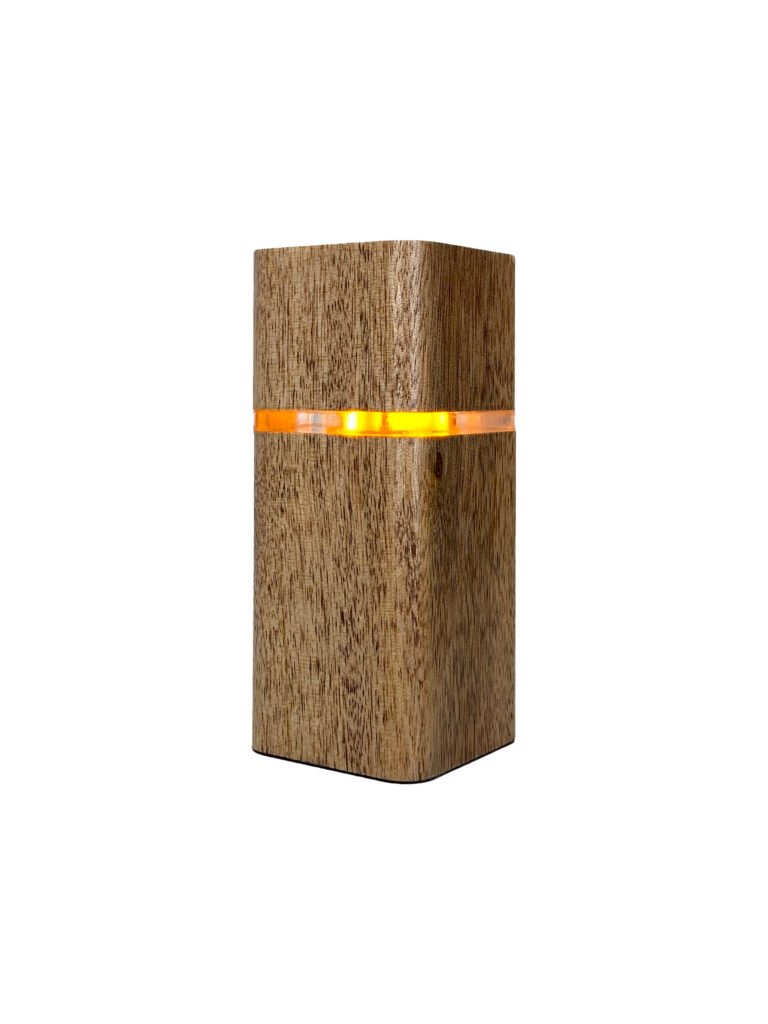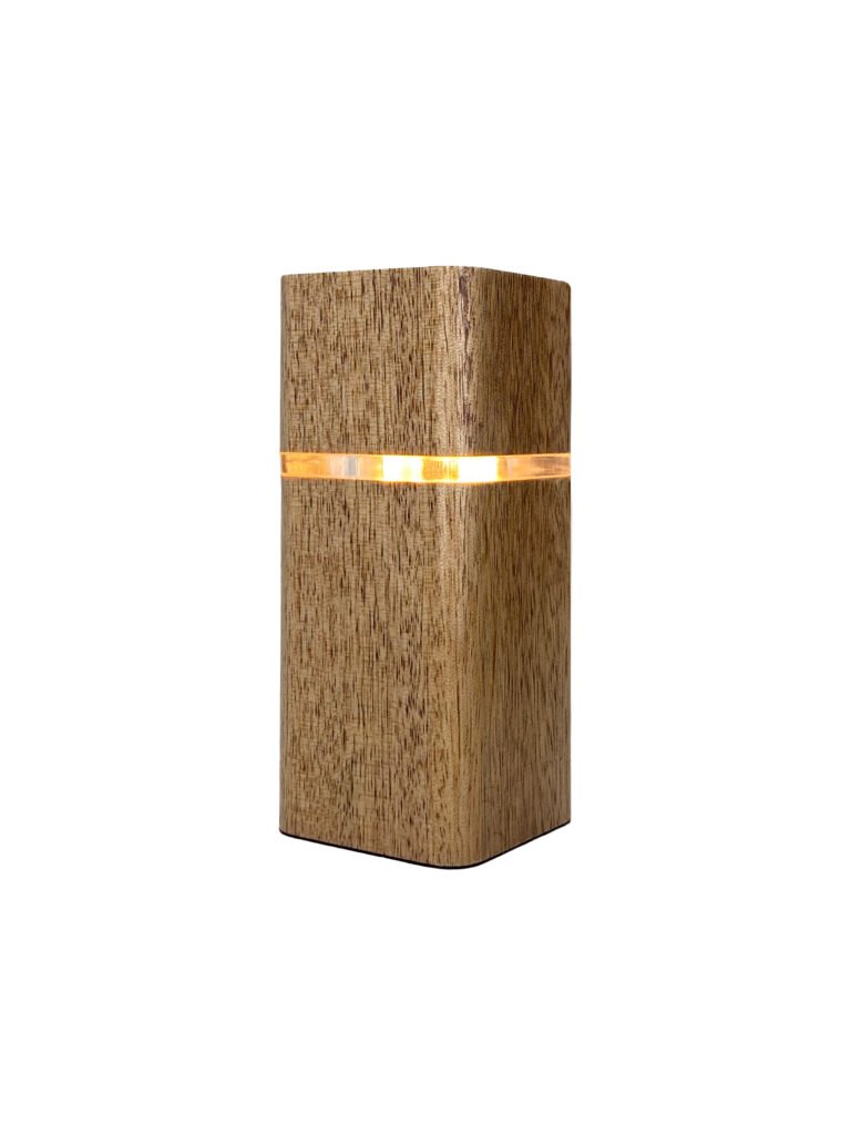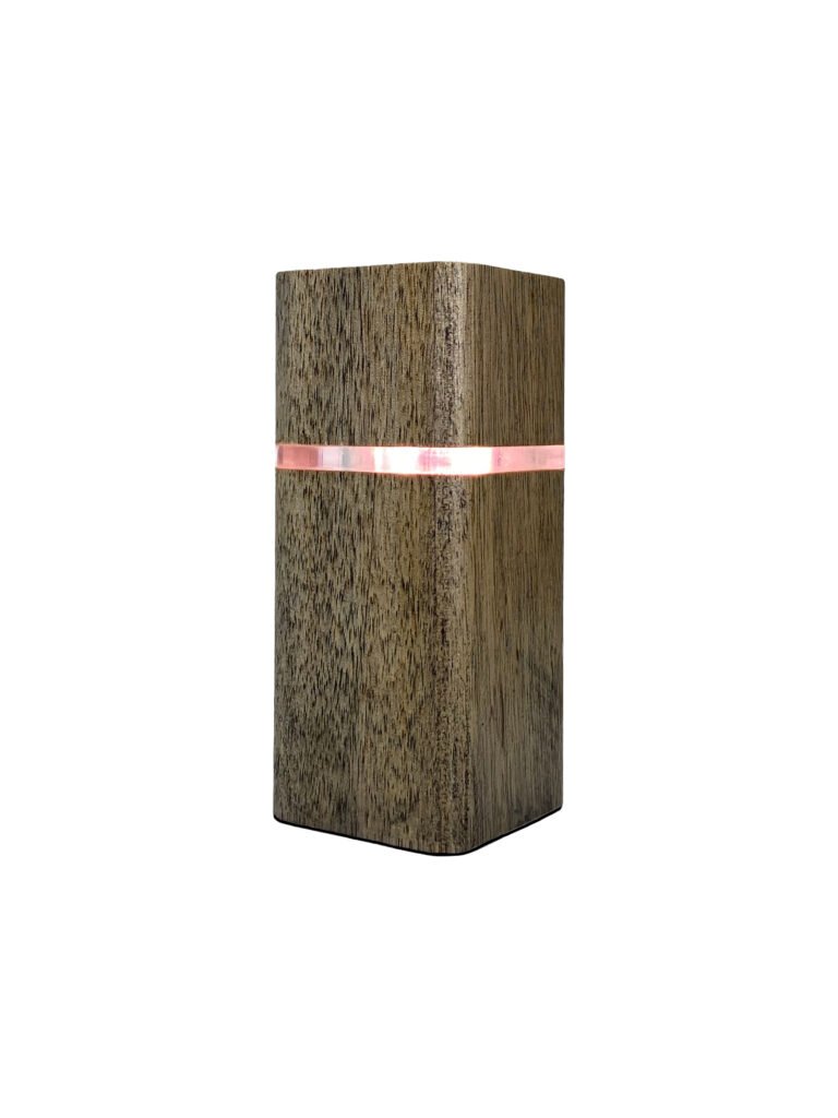 Luminária decorativa fabricada em Madeira e Acrílico com LEDs e Fonte Integrada, Cabo de 1,5m e Interruptor, Base em Tecido Macio e Embalagem com Berço para Presente em Camurça com Fita Cetim Perlucce.